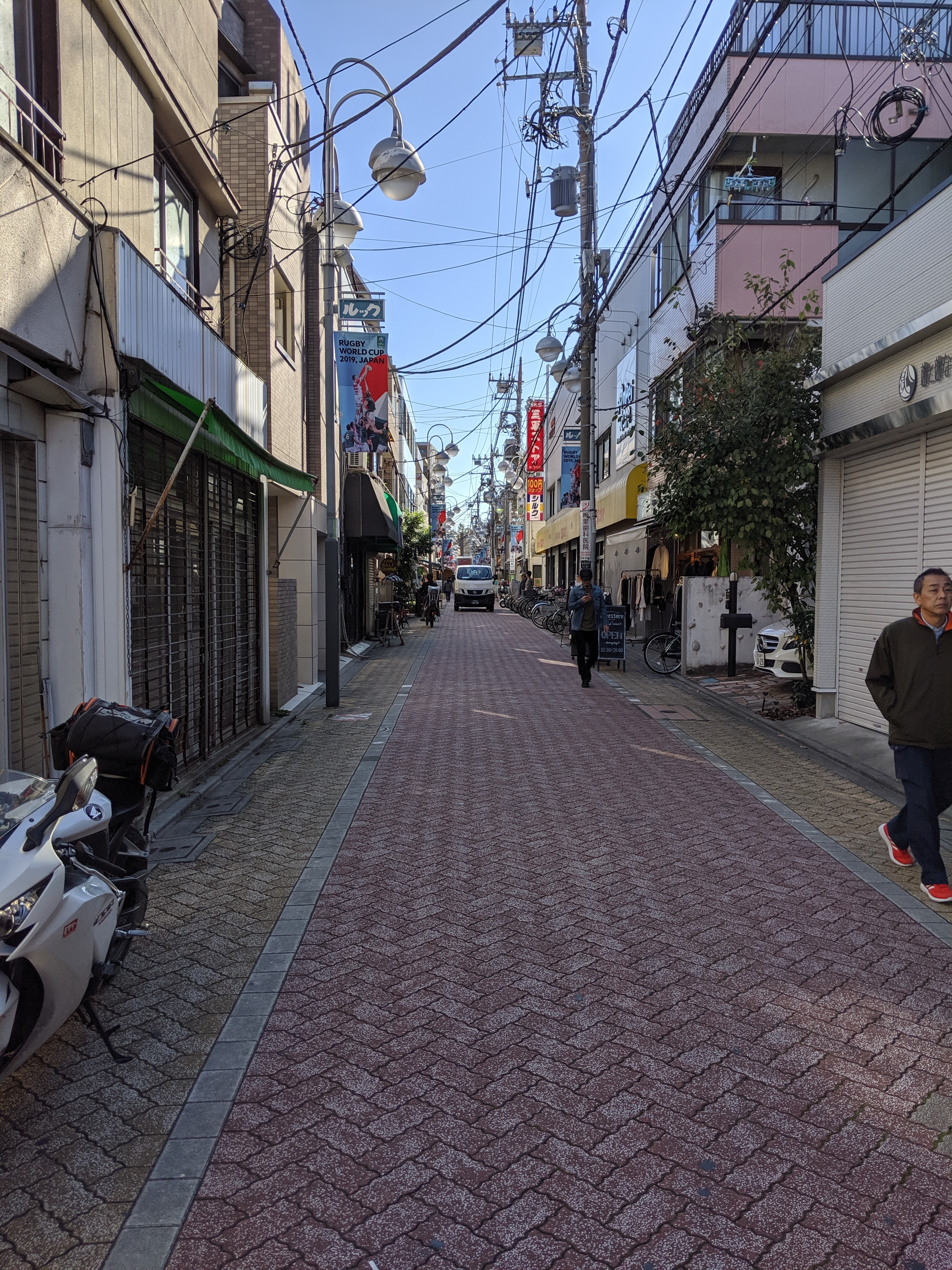 You might wonder why is this particularly interesting other than to fellow car buffs? Well these very small cars have been part of how cities are configured – they are response to and a shaper of the built environment and its regulation and management. Below is a typical Japanese minor street. A single lane width is perfectly usual for a neighbourhood high street, as we have here. As far as I could tell these were not one way streets. So it accomodates bi-directional traffic. Given so many of the commercial and private cars are a maximum of 1.48m wide there is sufficient space to accomodate passing vehicles or for deliveries to be made without blocking the street, even if a more normal sized vehicle is in the street as well. Keeping to the single carriageway width is incredibly efficient in terms of use of land and allows high densities of dwellings and businesses, without necessarily building tall.