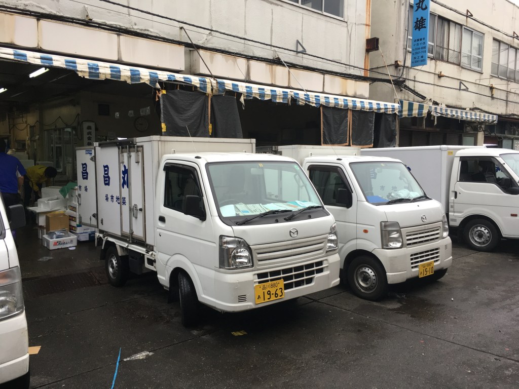 The Kei concept applies beyond private cars – you can get Kei people carriers, Kei vans and Kei pick up trucks. As an example of the commercial variety, below are some Kei trucks at the famous Tsukiji fish market in Tokyo. It’s a pity there isn’t a person standing next to them to truely understand how dinky they are. Yet these are not toys or joke advertising vehicles. These are vehicles earning a living for their owners; in this case setting off pronto to deliver fish to sushi restaurants across the city. What is interesting in this bustling scene is they are the predominant vehicle. Few operators seem to want anything bigger. In the West our commercial vehicles get ever bigger (The Ford Transit, a typical van in the UK, has doubled in size since originally launched in the late 1960s). In Japan everything has stayed small and they seem to like it that way.