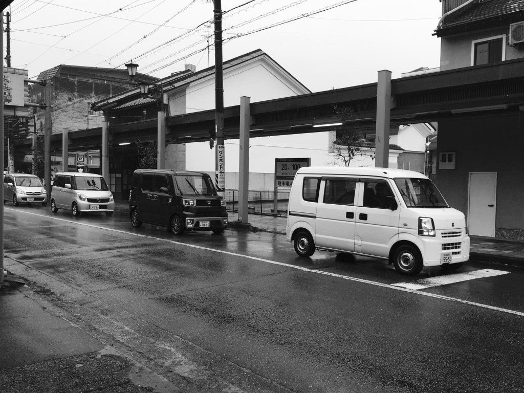 One of the side benefits of a Kei car’s dominant shape as a “box” is that the Japanese, who I think are the neatest parkers in the world, can park their vehicles very close to walls and carriageway edges. The image below is in a historic street in Takayama in central Japan. The Kei car is so neatly parked it’s almost hidden behind the electricity pole, sideways on to the property and right on the boundary line with the street.